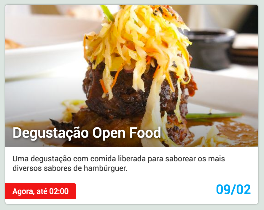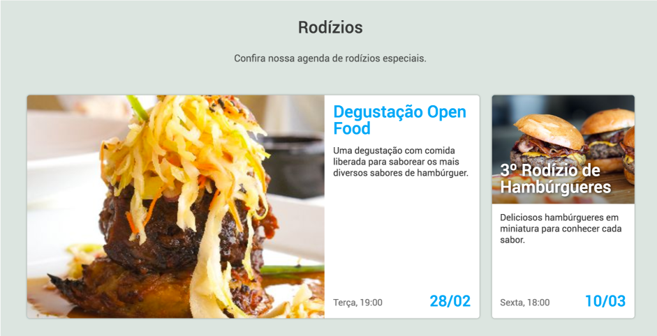 Agora, quando no tipo de exibição com imagem, os eventos mais próximos por acontecer aparecerão maiores e com mais destaque para a imagem, conforme abaixo: